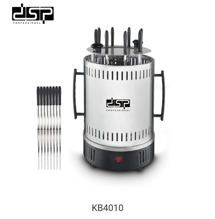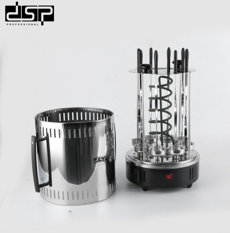 قدرت: 1500 وات سیخ باربیکیو 8 عدد استیل ضد زنگ دکمه سوئیچ لوله گرمایش فولاد ضد زنگ عملکرد چرخش خودکار سیخ ها در 10-15 دقیقه آماده می شوند لوازم جانبی: 8 سیخ تعویضی، 8 لیوان قطره چکان روغن.