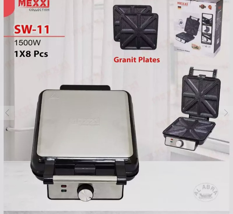اسنک ساز تک کاره مکسی دارای تنظیم درجه دارای صفحه گرانیت نچسب دارای 4 خانه مربعی ( 8 اسنک مثلثی ) 1500 وات واقعی دارای تنظیم درجه حرارت